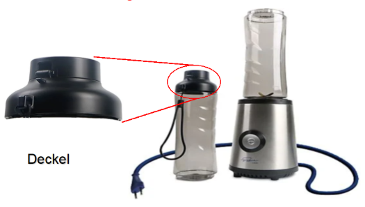 Betroffen ist der oben im Produktbild dargestellte schwarze Deckel des KOENIC Smoothie Makers.